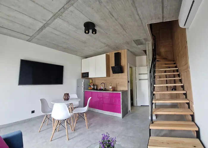 يشتمل مكان الإقامة على المطبخ الصغير ومعدات صنع القهوة والشاي، ويوفّر المايكرويف والغلاية الكهربائية والبرَّاد. يقع مكان الإقامة قريب جدا من أقرب محطة حافلات Droga Swarzewska. يمكن للضيوف الاستمتاع بالاسترخاء التام في الشقة الّتي تتضمن وسائل الراحة الفاخرة مثل منطقة التشمُّس وتراس التشمُّس والمنطقة للنزهات.